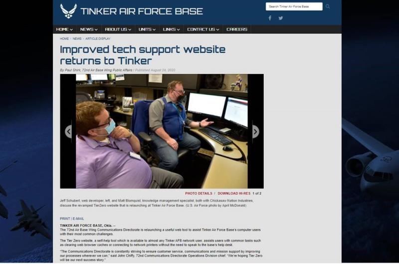 CNI Improves tech Support at Tinker Air Force Base / August 25, 2020 CNI relaunches useful web tool at Tinker Air Force Base to assist users in resolving common computer issues. Read more here. Previous Next